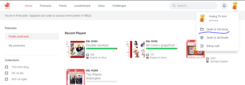Chú ý: Tính năng này dành riêng cho Teachers/Premium Users. Normal users không có khả năng đăng bài lên hệ thống. Nếu bạn muốn mua WELE Premium Service, bạn hãy theo đường link này nha https://app.wele-learn.com/user/plans