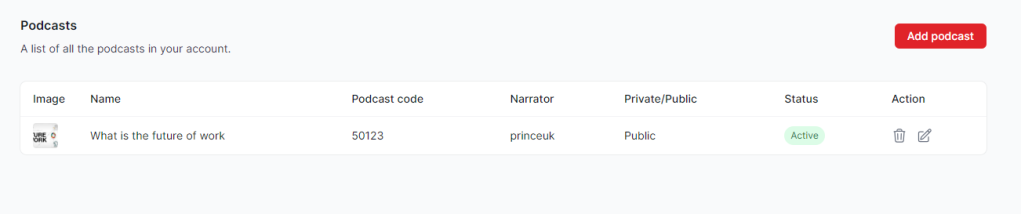 Bài nghe sẽ xuất hiện trong mục "My podcasts" ở trang Podcasts sau khi bạn ấn Publish, và đồng thời xuất hiện trên mobile app để bạn có thể nghe bất kỳ lúc nào.