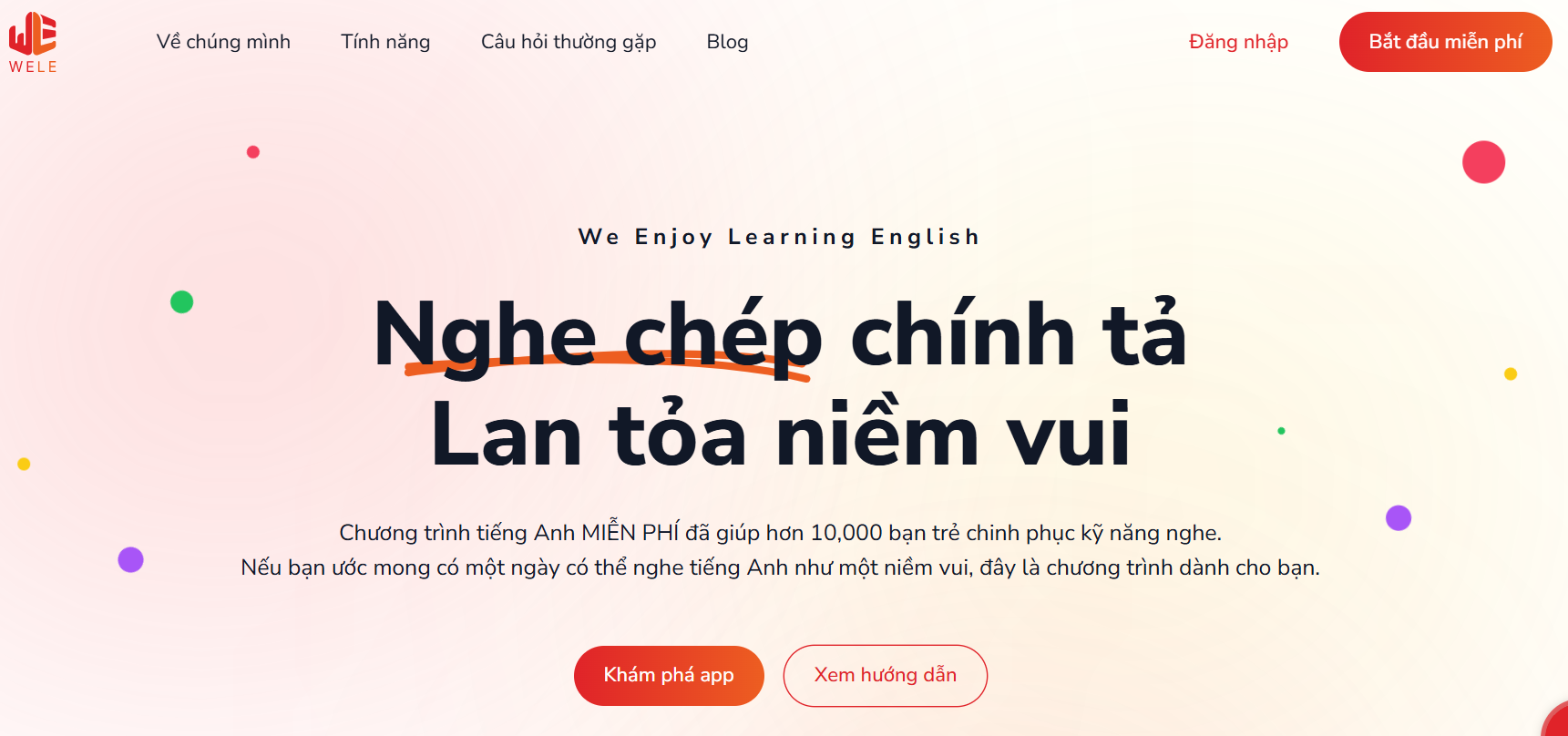WELE Learn là một chương trình luyện nghe chép chính tả miễn phí đã với sự tham gia của hơn 20,000 thành viên. Chỉ với 3 bước sau, bạn đã tham gia vào một cộng động học tiếng Anh vô cùng hiệu quả.