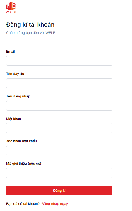 Mã giới thiệu là username của người giới thiệu bạn tới WELE, nếu không có ai giới thiệu thì bạn để trống.