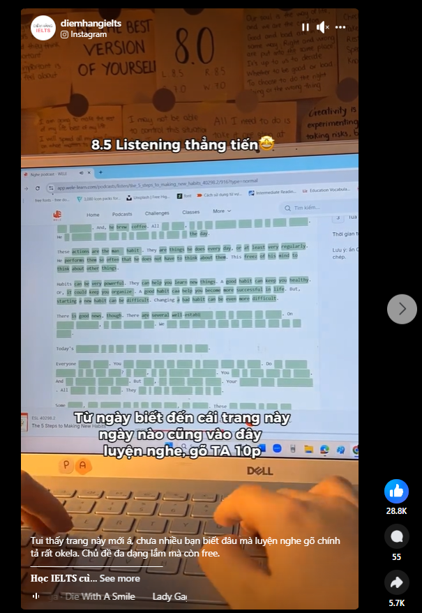 Trung tâm Diễm Hằng IELTS cũng là chủ của một video rất lôi cuốn đã được hàng chục ngàn tương tác và hơn 5000 chia sẻ về platform WELE đó cả nhà ạ