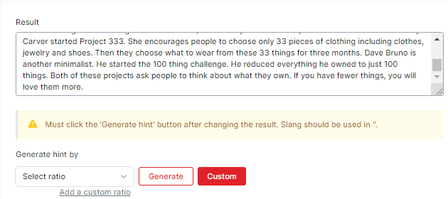 Với sự góp ý của thầy Nguyễn Hoàng Giang, WELE đã phát triển công cụ để có thể tích hợp kết quả của ChatGPT trong việc tạo bài nghe.