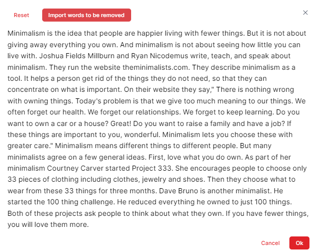 Sau khi ấn Custom thì bạn ấn “Import words to be removed” và copy danh sách từ bên trên